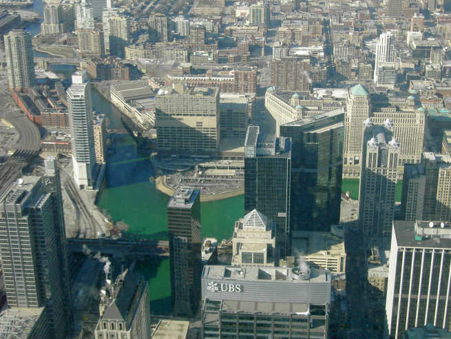 From atop the Sears Tower - I wonder why the Chicago River always looks green?