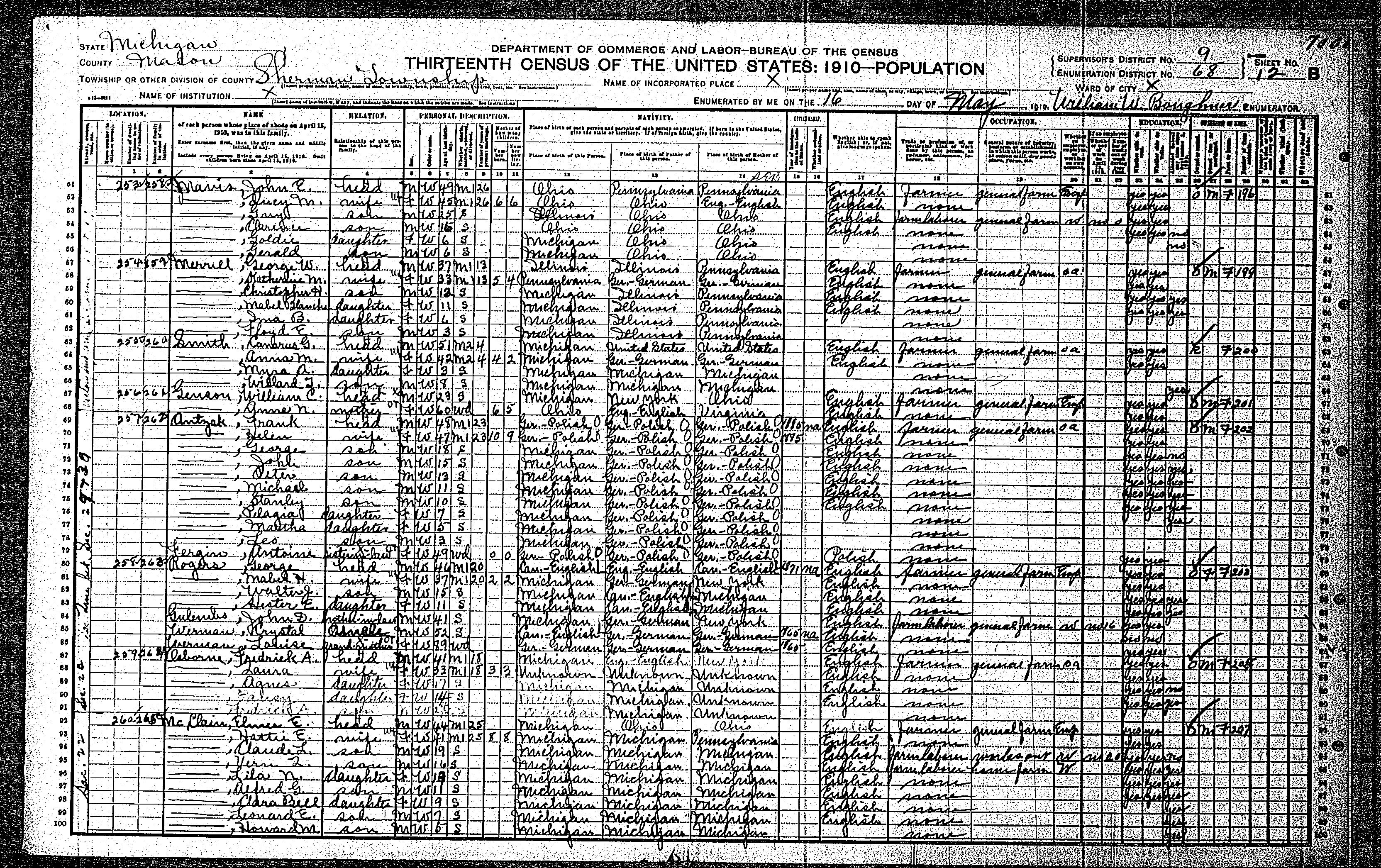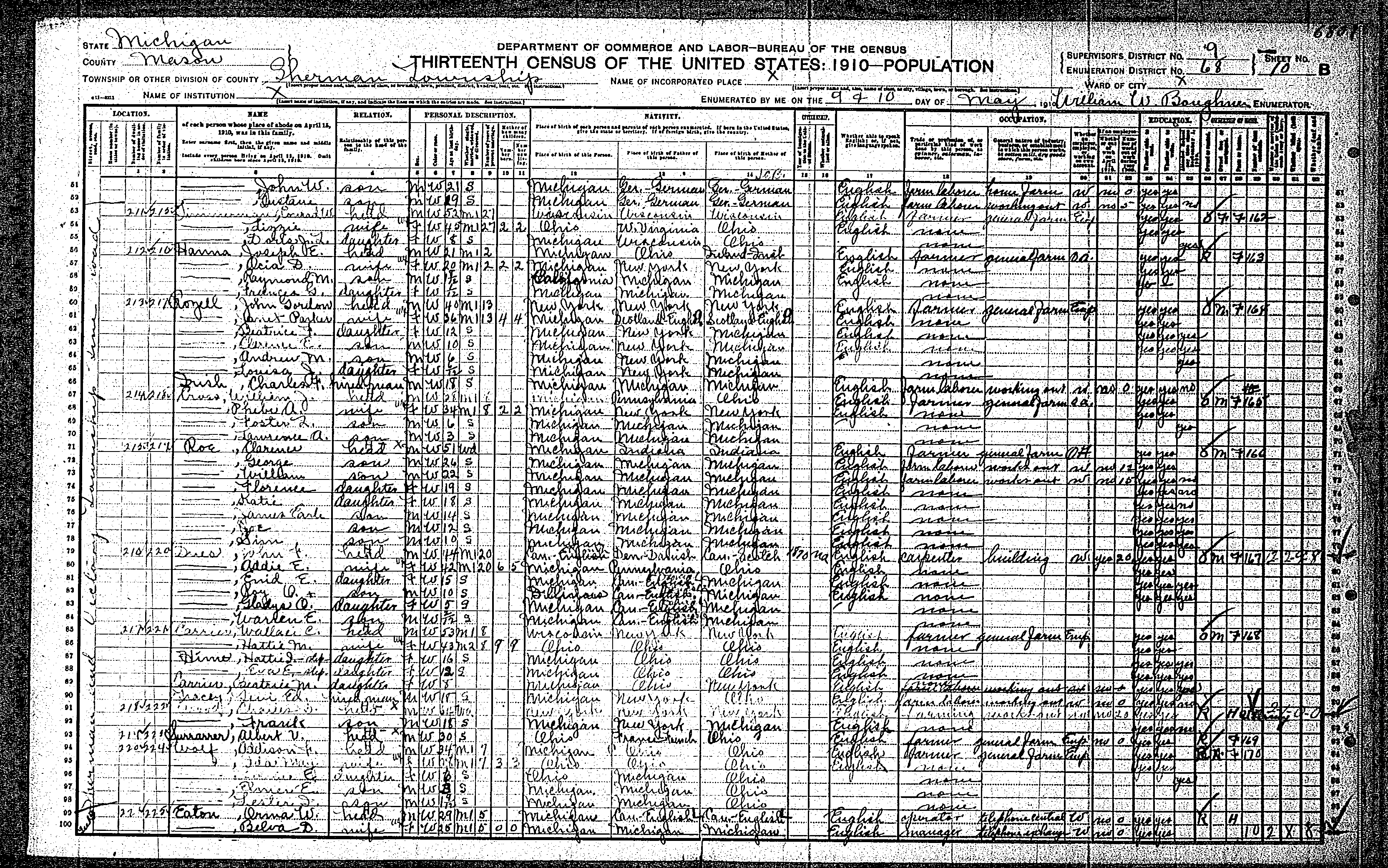 1910 Census - Sherman Twp, Mason Co, Michigan