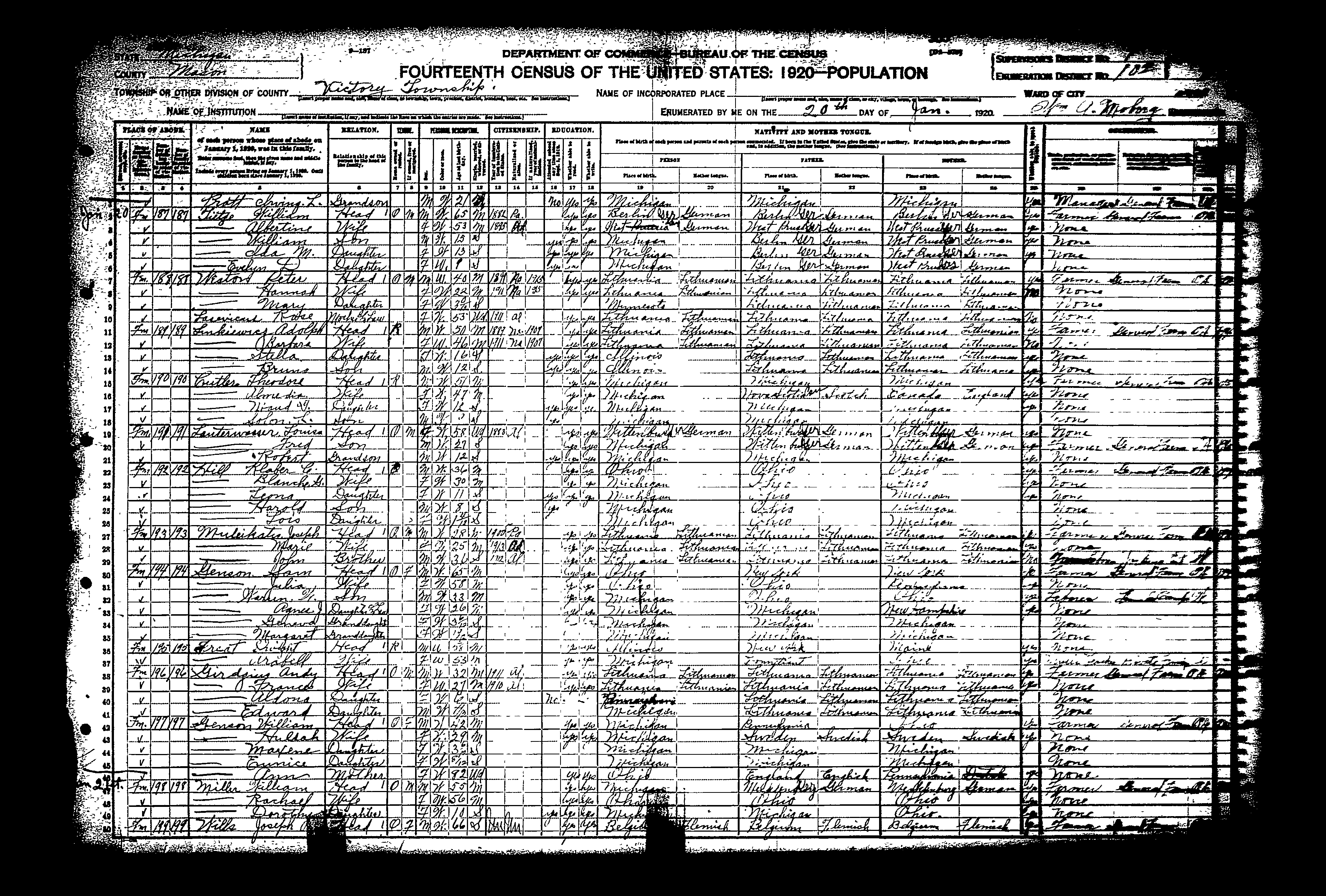 1920 Census - Victory Twp, Mason Co, Michigan.