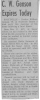 Samuel Cox Genson's tombstone, Sugar Grove Cemetery, Sherman Township, Michigan |
