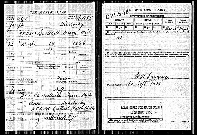 Joseph Mikolusky WWI draft registration card.