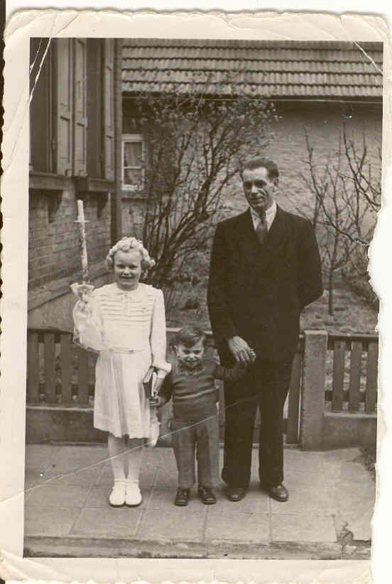 Anni Radner (left) first communion with cousins Hubert and Irmgard. |